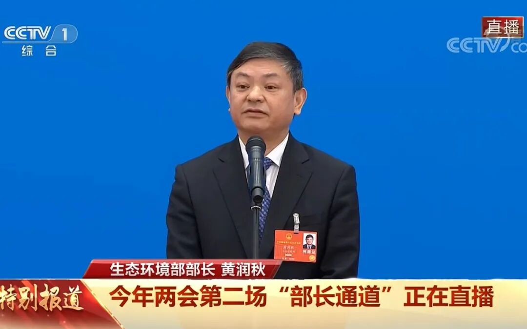 黄润秋的首次公开亮相,半小时内回答了四个问题,是今年“部长通道”中答题最多的部长。